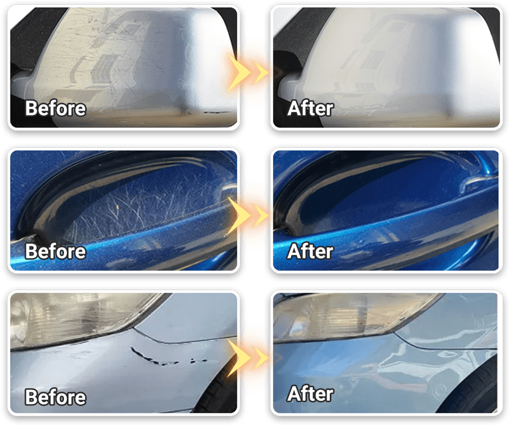 Il élimine non seulement les rayures et les tourbillons, mais il traite également l'oxydation et redonne à votre peinture un éclat brillant. Sans produit de remplissage ni besoin d'eau, il offre une réparation simple et rapide, quel que soit le design ou la couleur de votre voiture.